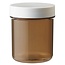 Plastobel pot geproduceerd van het materiaal PS (polystyreen) bruin met opgeschroefde gladde PP dop (polypropyleen) Geschikt voor verpakken van o.a. tabletten, dragees en capsules.